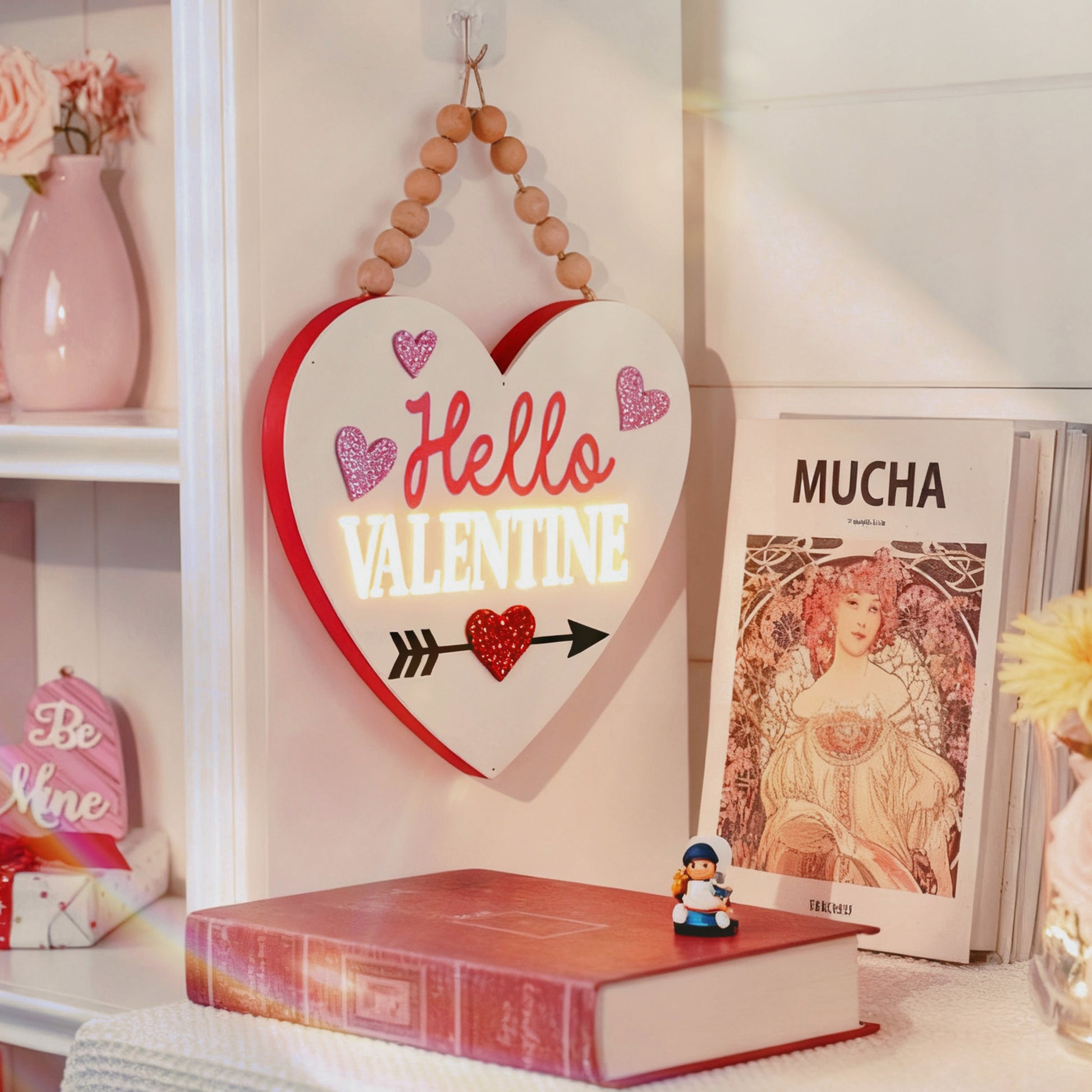 Valery Madelyn Valentines Day Decorations, Wooden Heart Decor with LED Light, Valentine Wreath for Front Door, Romantic Heart Decorations for Home Proposal Wedding Anniversary, 9 inch
